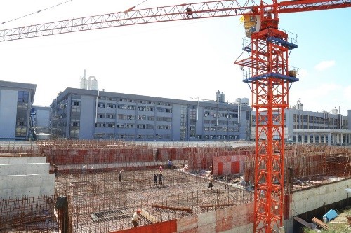 大型吊装设备来回搬运、挖掘机作业不断,工人们正在抓紧施工作业。这几天,滨海第二水厂二期工程现场呈现一派忙碌的建设景象。
