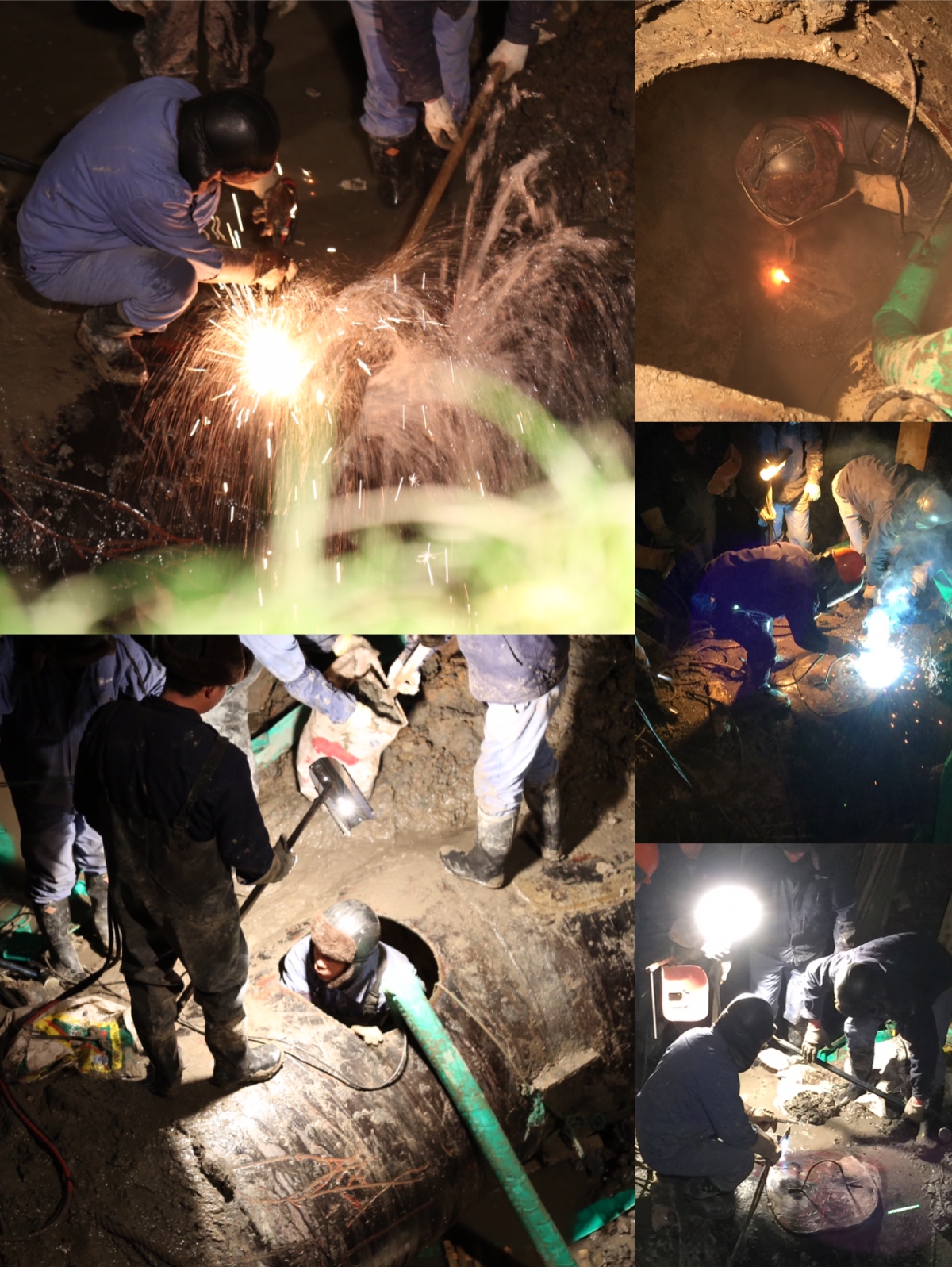 1月10日凌晨4时,位于湖安路以西振湖酒厂桥管以南,口径为DN800的杨汛桥支线4#桥管终于彻底修复。挑灯鏖战9小时的抢修人员露出了微笑,忘却了疲劳。
