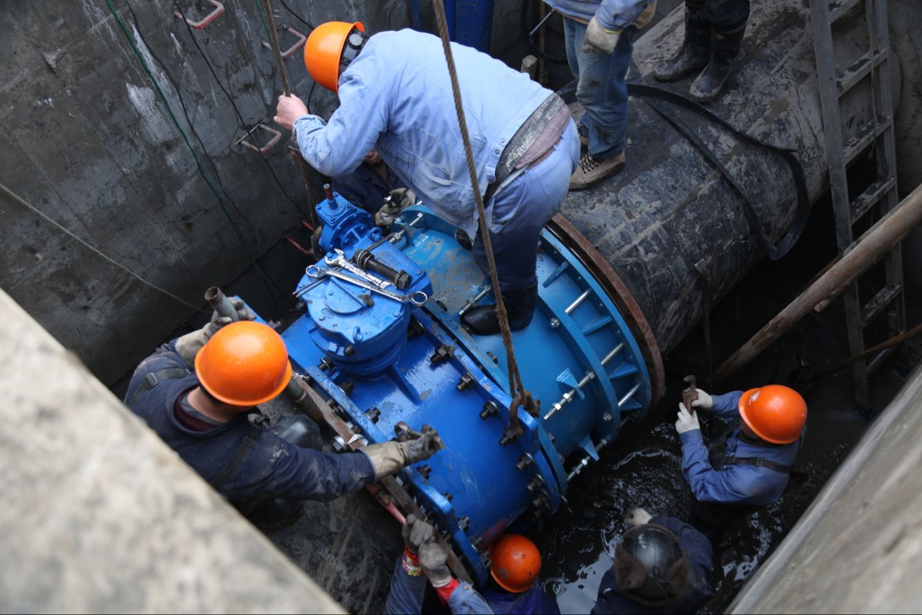 为尽可能消除每年由于沉降及热胀冷缩引起的爆管隐患,有效减少供水抢修对用户用水的影响,同时更利于今后供水管网调度,2月6日上午8时,公司组织工作人员在小舜江一期总管36#桥管东侧安装一只口径为DN1200的控制蝶阀和配套伸缩节。